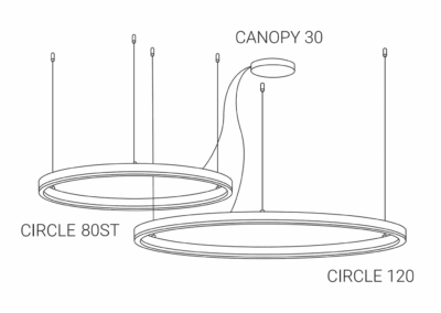 Príslušenstvo - samostatná rozeta pre vytvorenie vlastnej zostavy so svietdilami CIRCLE 80ST, CIRCLE 100 a CIRCLE 120. Možnosť zostavy s maximálne 2 svietidlami. Priemer 30cm, dostupné vo viacerých farebných prevedeniach.
